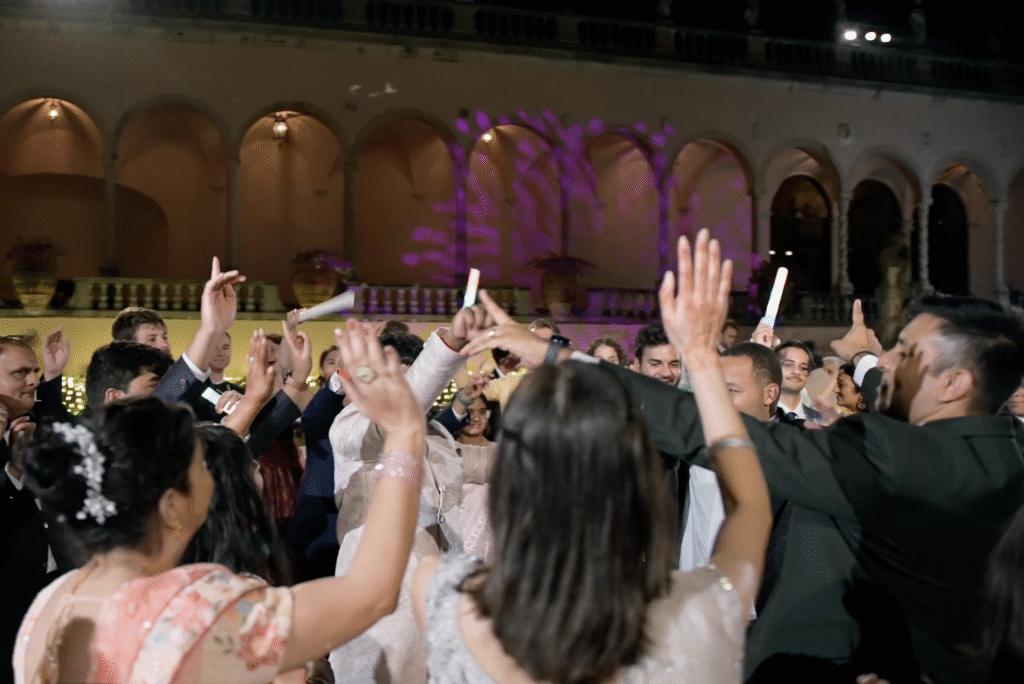 What made this celebration truly exceptional was how naturally both cultures came together. Nothing felt forced or overly staged; instead, every moment flowed into the next with authenticity and joy. As a team that specializes in South Asian and fusion weddings throughout Florida, this is exactly the kind of experience we love to create—where tradition is honored, modern style is embraced, and the dance floor becomes the heart of the celebration.