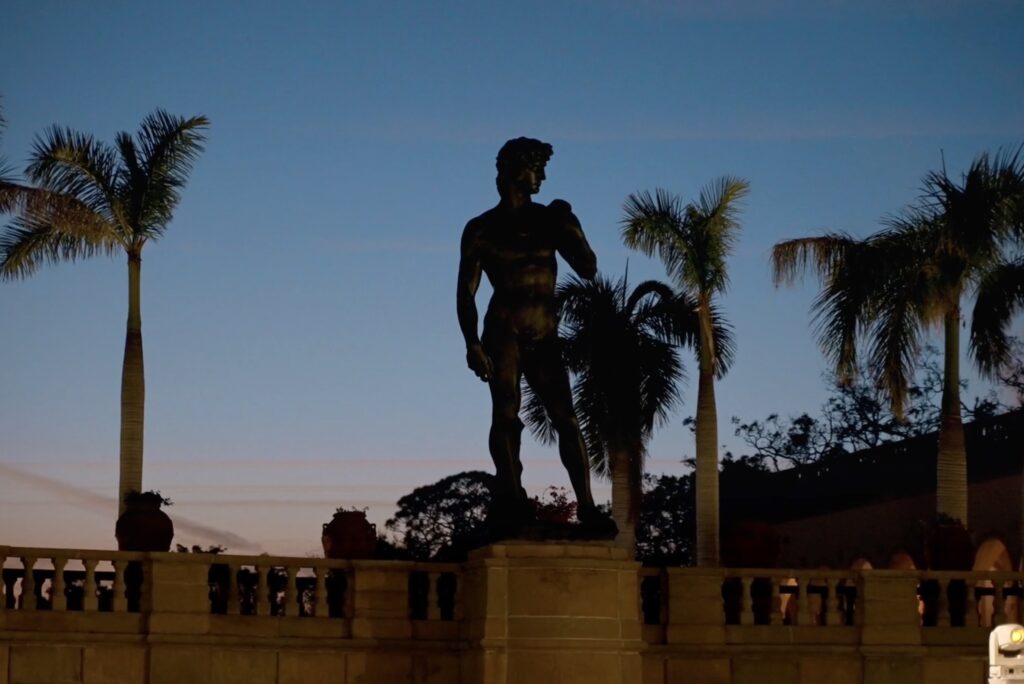 Christopher’s Baraat took place along the iconic Ca’D’Zan grounds, where guests gathered along the waterfront for a lively and modern processional. Our dhol player led the way, with the fusion crowd energetic and engaged The music mixed classic Baraat favorites with global beats, creating an atmosphere that felt exciting, inclusive, and completely true to the couple’s style.